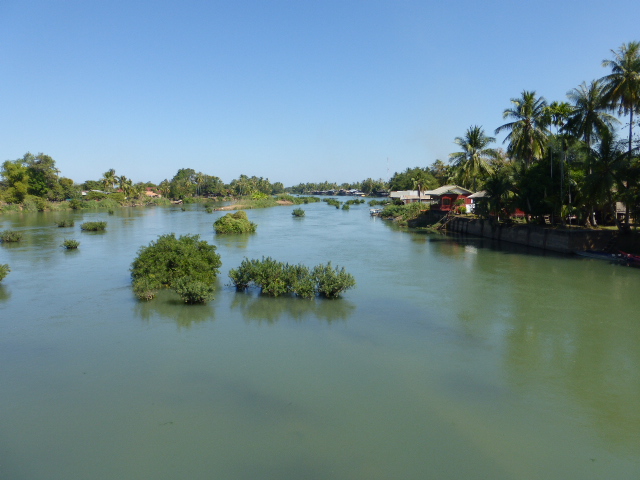 We hired some bicycles and we spent a day touring the length of the island, crossing over the old stone bridge to the even smaller island of Don Khone (which is not to be confused with Don Khong).