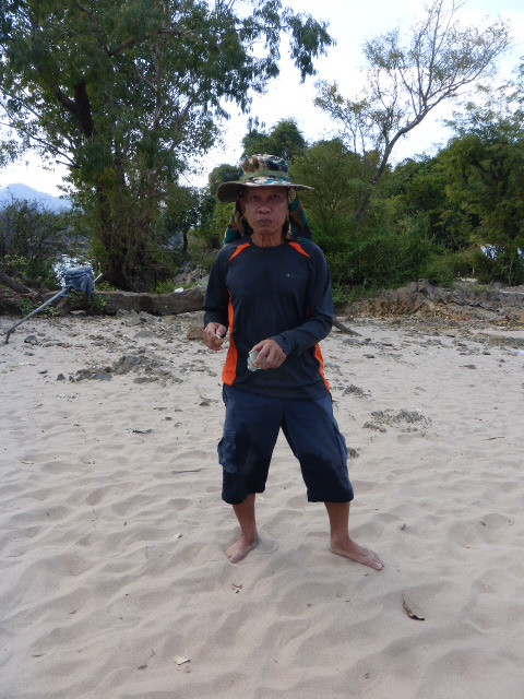 We first had to take a ferry ride over to the island’s sandy beach. Our rucksacks were all piled at the front of the boat and the passengers were warned not to move once we were seated or the boat would tip over – and then thankfully quite quickly we were landed on the hot sand over on the island.
