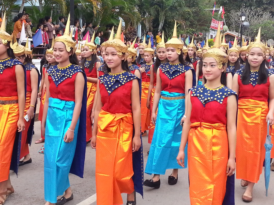 The sides of the main street were packed and tourists were running over and shoving cameras in faces to get the perfect shot – never mind the fact that the Laos are generally very shy. That they were in the parade seemed to mean that they were fair game to some of the audience.