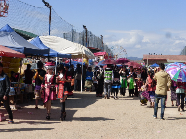 Tailors and seamstresses were busy in the market making new dresses and outfits. The girls (and many of the men) were dressed up to the nines in traditional Hmong costumes – there were bright colours everywhere.