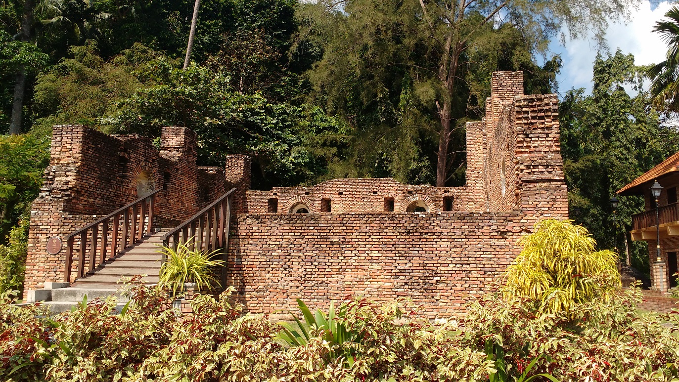The Dutch Fort on Pulau Pangkor is a tiny brick-walled enclosure set on a hill overlooking the bay, although trees now block much of the view. Ride along the coast road too fast and you will miss it – as Carina and I managed to do. Twice!