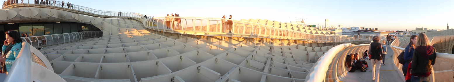 In contrast to the old and the traditional alcazar the large structure of the mushrooms or parasols intrigued us. Designed by the German architect Jurgen Mayer and completed in 2011 the series of wooden platforms connected by walkways high above the plaza below form the largest wooden structure in the world.