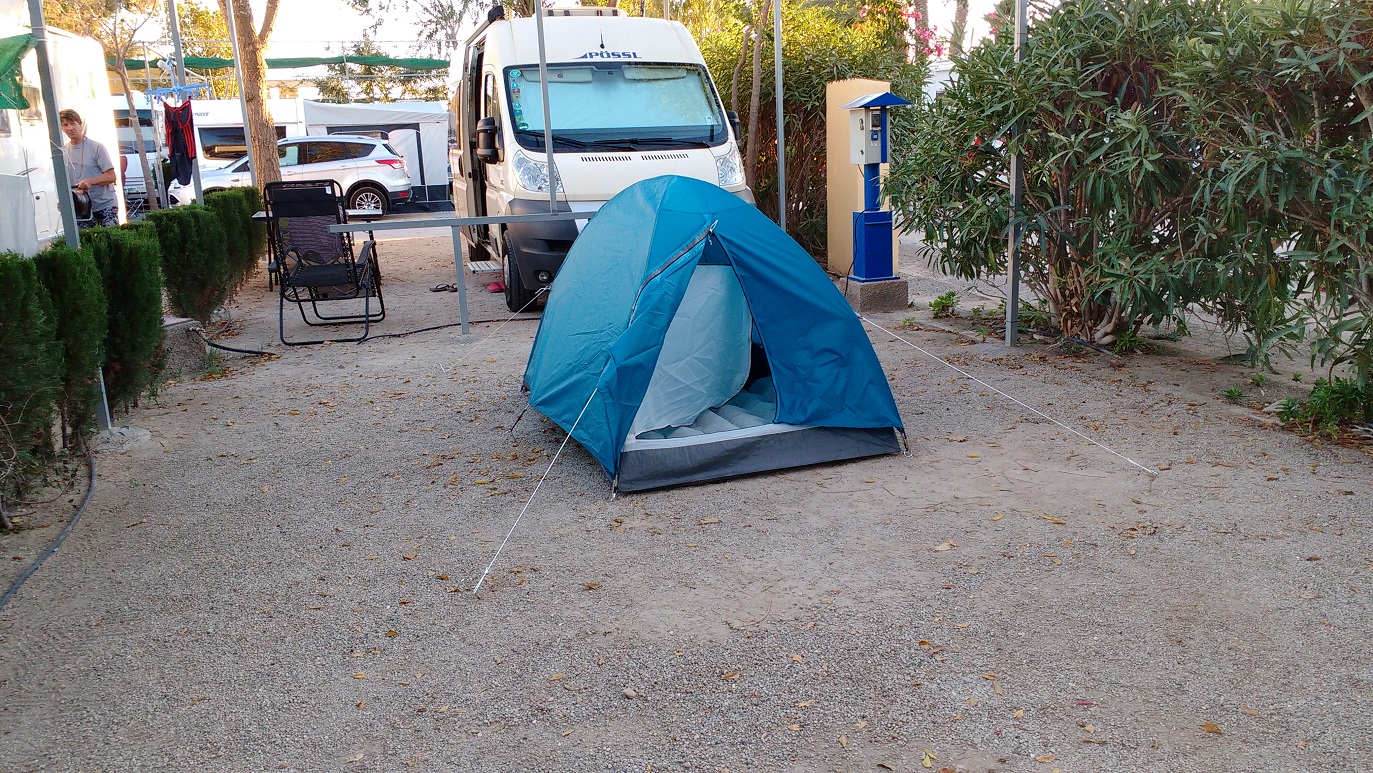 Bolnuevo – Camping ‘Playa de Mazarron. This large lively site was deathly silence from 10.30pm. Shower blocks were clean and there were many of them, there was wifi available and pitches were divided up with shrubs and trees. Best of all was its position with beach access and close proximity to bars and restaurants on the beach.