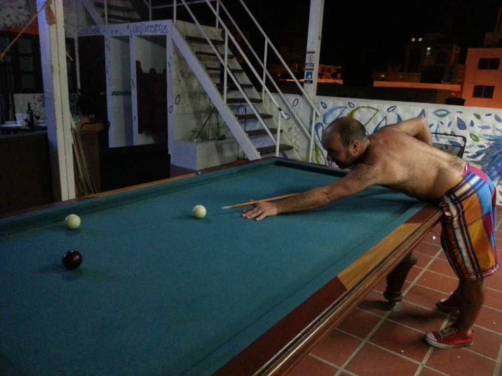 When we finally managed to stir ourselves from Taganga we went back to Santa Marta and spent another night at the Hostel Jackie. Walking into reception we were pleased to get our old room back. Up on the roof terrace I met Martin from an Argentina who explained that yes, the pool table was supposed to have no pockets and only three balls, and no, it wasn’t a pool table at all but a game called billar which was frustratingly difficult to play and made snooker and pool look like childs play.
