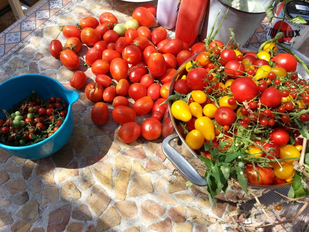 Chillies were hung up on strings to dry, chopped and soused in vinegar or cooked up into the most amazing pepper and mango sauces; and then the tomatoes arrived. They were to prove the bane of my life, as every fresh batch that ripened seemed to coincide with either heavy winds which flattened the canes or sudden thunderstorms which saturated the ground and caused the fruit to explode. There were green tomatoes, plum tomatoes and yellow light bulb shaped tomatoes as well as currant tomatoes and your bog-standard ordinary ones too.