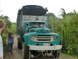 3. Bus travel has been described to me by more than one Colombian as an extreme sport. Drivers are recruited on their fearlessness and their ability to keep the accelerator pressed flat to the floor, even when collecting or depositing passengers. Mothers with babies in their arms, twenty school children, crinkly old ladies with a sack of beans over their shoulder or men with boxes of chickens – the bus stops for no one. If you are very lucky there will be a conductor on board who will leap off and give you a not so gentle shove up the arse or take the chickens off you so that you have two hands free, and then the bus will lurch forward again, rolling all the newbies along the aisle. No need to shout ‘move along please’ – the g-force compacts everybody towards the back with little effort, with the already seated passengers holding up willing arms to catch the babies or the beans.