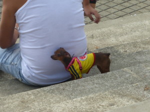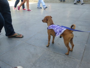 8. Dogs are dressed up. Dogs wear clothe;, coats, scarves, hair ribbons and slides, booties and dresses. They even have football strips for dogs and like the men, they have a passion for nail varnish – well, to be honest, probably the dogs couldn’t care less but their owners do. In a place where the temperature is melting hot it strikes me as odd to add more layers to an already furry creature – although if they sold strait jackets for dogs I would buy one for the dog which tried to attack me the other week and bit the leg of my shorts.
