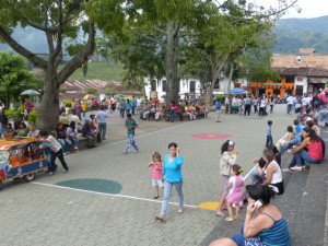 Some of the volunteers would head off to teach English to the secondary school children in the afternoon, but having done my bit at the primary school in the morning I would either hang around in a hammock and recharge my batteries or I would head off in the other direction into the town. We would also take it in turns to attend an intercambio group consisting of adults and children in Amagá and which usually ended in a beer or two once the little ones had left.