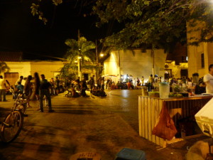 To begin with I checked into the Mamallena hostel on Calle Media Luna. This street is a hive of activity and in my mind is THE best place to be located if you stay in Cartagena. These little streets throb. Yes, they are noisy and dirty and very overwhelming but it is nitty gritty life acted out in front of you everywhere you look. Just along the road by the park the prostitutes sit and watch the world go by, the beggars roam around in their rags searching through the rubbish and you will probably be offered all sorts of drugs, but don’t let any of this put you off. Everybody is very friendly and just getting on with their own lives in their own way.
