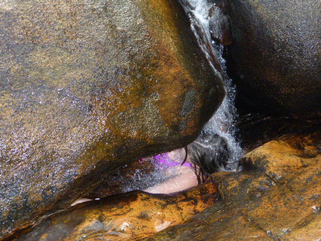 We hiked inland following a river uphill through the trees, stopping every so often to swim in the pools at the base of the little waterfalls. We came to a place where the waterfall dropped down into a small hole underneath a huge boulder and splashed out several yards away at the bottom. Known as ‘the rock that swallows’ we watched as people squeezed into the hole and were swept underneath to be spat out the other side. I have pushed many boundaries on this trip but this was one which was not going to be attempted.